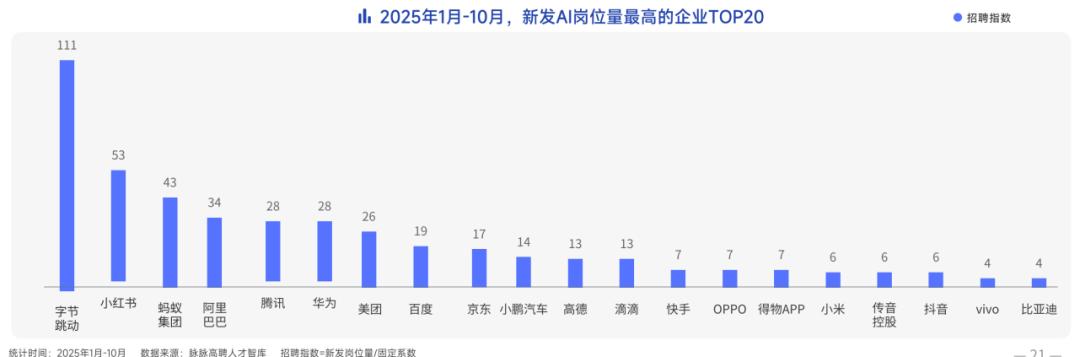 此外,据脉脉⾼聘人才智库今年12月发布的《2025年度人才迁徙报告》,在国内AI人才招聘方面,字节跳动一骑绝尘。