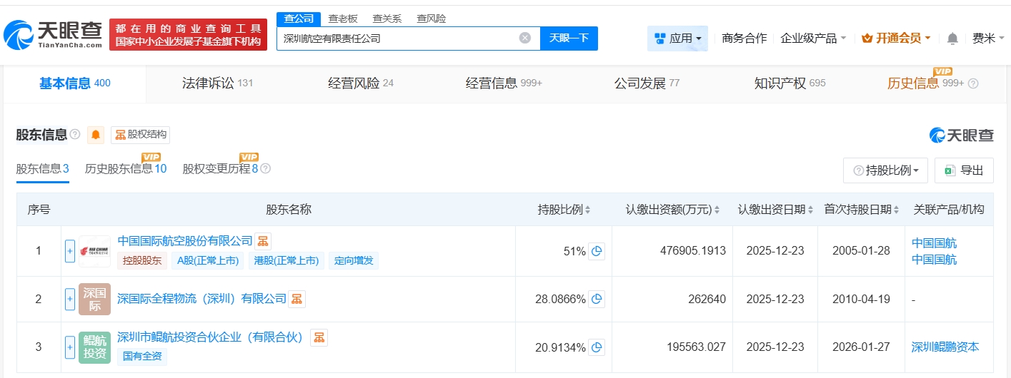 该公司成立于1989年10月,法定代表人为李树兴,经营范围包括旅客票务代理、票务代理服务、商务代理代办服务等,现由中国国航(601111)、深国际全程物流(深圳)有限公司及上述新增股东共同持股。