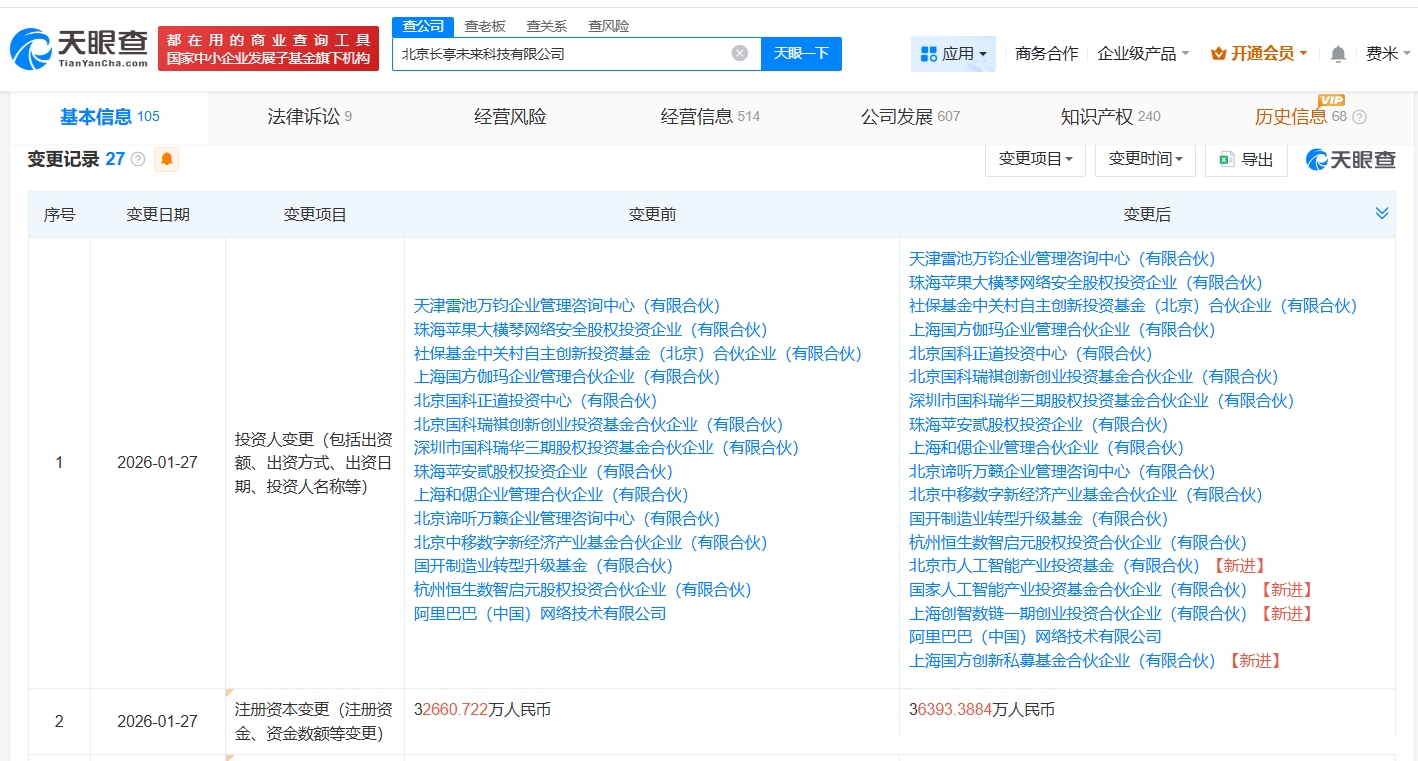 雷达财经讯,天眼查工商信息显示,近日,北京长亭未来科技有限公司发生工商变更,新增北京市人工智能产业投资基金(有限合伙)、国家人工智能产业投资基金合伙企业(有限合伙)等为股东,同时,注册资本由约3.3亿人民币增至约3.6亿人民币。