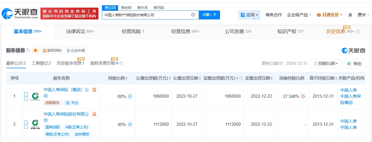 雷达财经讯,天眼查工商信息显示,近日,中国人寿财产保险股份有限公司发生工商变更,注册资本由188亿人民币增至278亿人民币,增幅约48%,同时,多位主要人员发生变更。