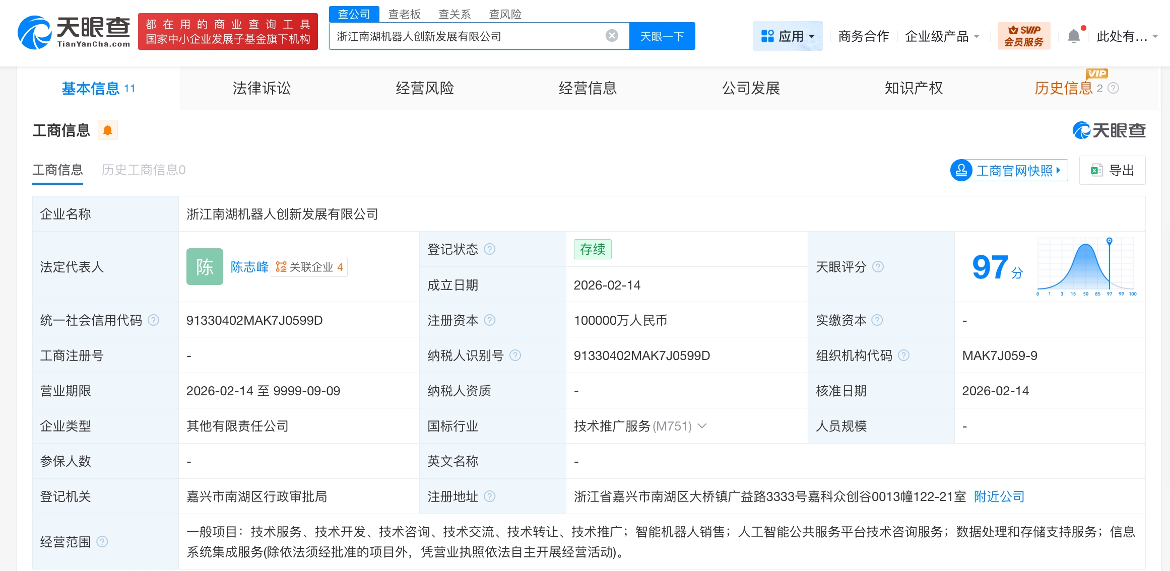 雷达财经讯,天眼查App显示,近日,浙江南湖机器人创新发展有限公司成立,法定代表人为陈志峰,注册资本10亿人民币,经营范围为技术服务、技术开发、技术咨询、技术交流、技术转让、技术推广,智能机器人销售,人工智能公共服务平台技术咨询服务,数据处理和存储支持服务,信息系统集成服务,由嘉兴科技城产业投资基金有限公司、浙江南湖数据发展集团有限公司、嘉兴市群英投资开发有限公司、嘉兴市双龙建设发展有限公司等共同持股。