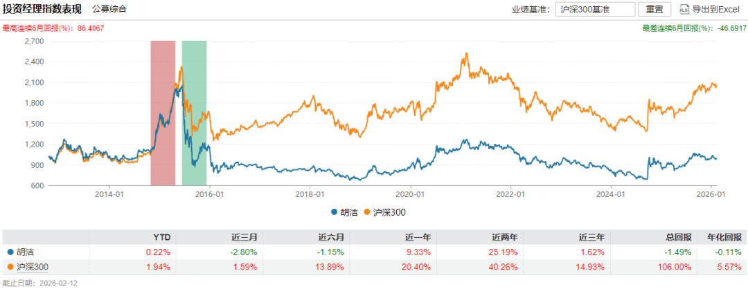 不过从胡洁的投资业绩来看并不是很理想,近一年回报为9.33%,要远低于沪深300指数的20.4%,近两年、近三年回报,以及总的年化回报也要明显低于沪深300指数。