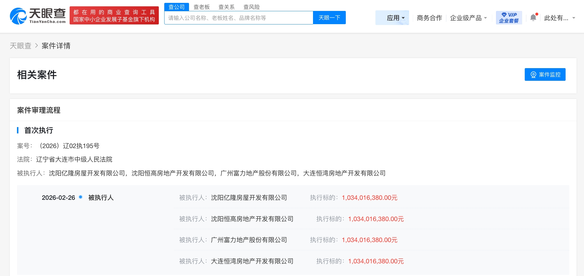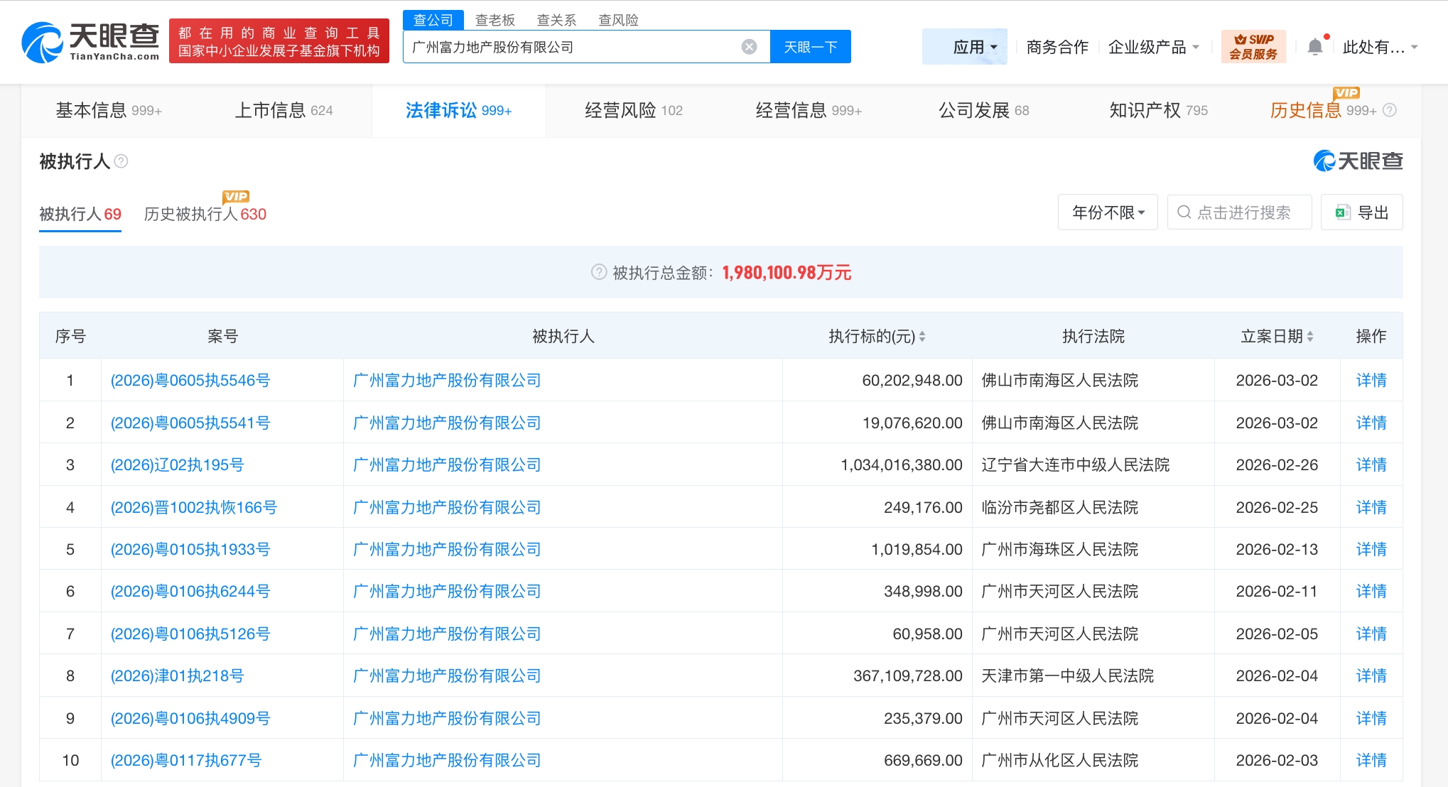 雷达财经讯,天眼查法律诉讼信息显示,2月26日至3月2日,广州富力地产股份有限公司新增3则被执行人信息,执行标的合计11.1亿余元,被执行人还包括大连恒湾房地产开发有限公司、沈阳恒高房地产开发有限公司等,执行法院为辽宁省大连市中级人民法院、佛山市南海区人民法院。