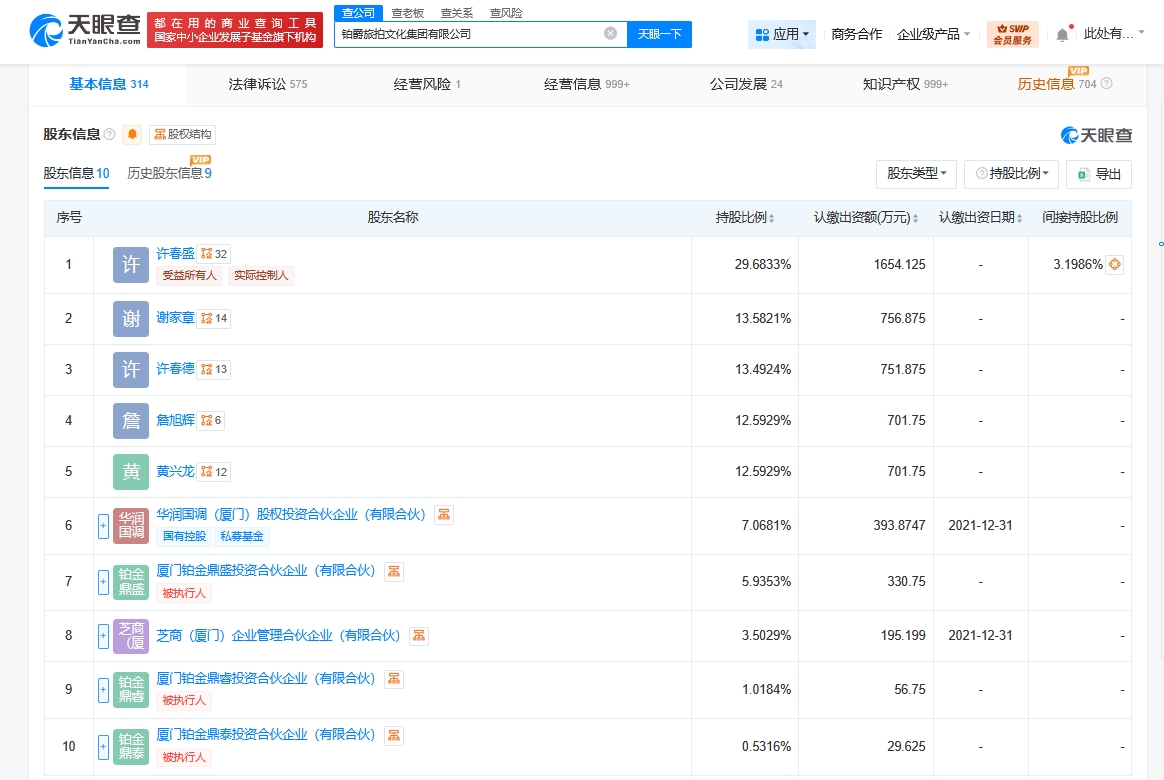 雷达财经讯,天眼查天眼风险信息显示,近日,许春盛、谢家章、许春德、詹旭辉、厦门铂金鼎睿投资合伙企业(有限合伙)、厦门铂金鼎盛投资合伙企业(有限合伙)、厦门铂金鼎泰投资合伙企业(有限合伙)等新增一则被执行人信息,执行标的1.75亿余元,执行法院为福建省厦门市中级人民法院。