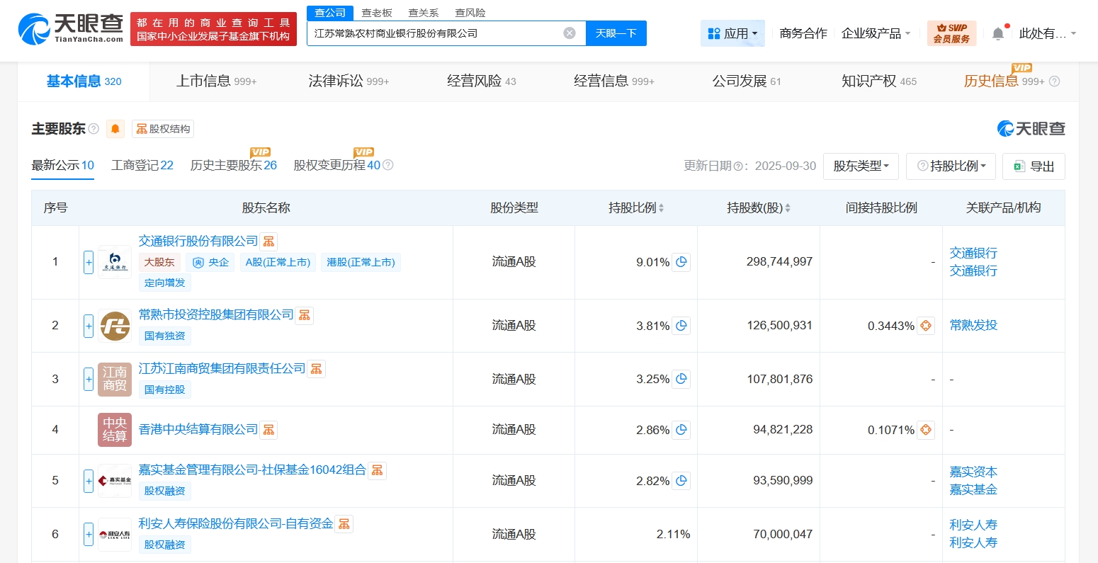 江苏常熟农村商业银行股份有限公司成立于2001年12月,法定代表人为薛文,经营范围为银行业务、公募证券投资基金销售。股东信息显示,该公司由交通银行(601328)、常熟市投资控股集团有限公司、江苏江南商贸集团有限责任公司等共同持股。