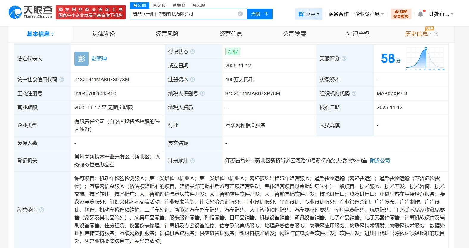 雷达财经讯,天眼查工商信息显示,近日,造父(常州)智能科技有限公司成立,法定代表人为彭照坤,注册资本100万人民币,经营范围含机动车检验检测服务、网络预约出租汽车经营服务、道路货物运输、互联网信息服务、人工智能理论与算法软件开发、人工智能应用软件开发、二手车经纪等。股东信息显示,该公司由造父智能旗下广州造父智能科技有限公司全资持股。