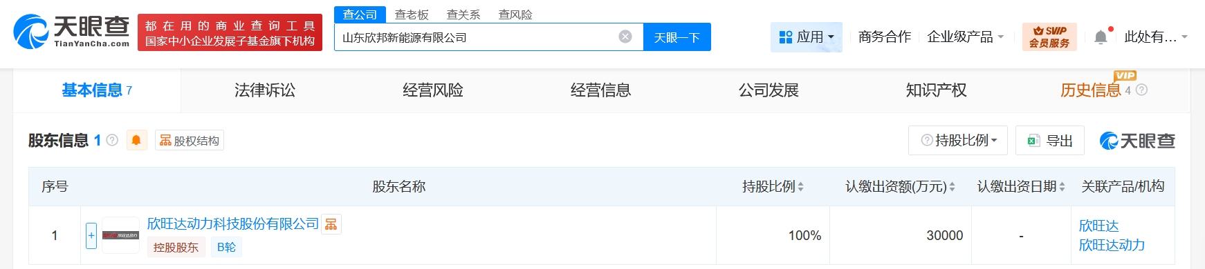 雷达财经讯,天眼查App显示,近日,山东欣邦新能源有限公司成立,法定代表人为叶智林,注册资本3亿人民币,经营范围含新兴能源技术研发、电池制造、电池销售、电动汽车充电基础设施运营、输配电及控制设备制造、智能输配电及控制设备销售、光伏设备及元器件销售等。股东信息显示,该公司由欣旺达动力科技股份有限公司全资持股。