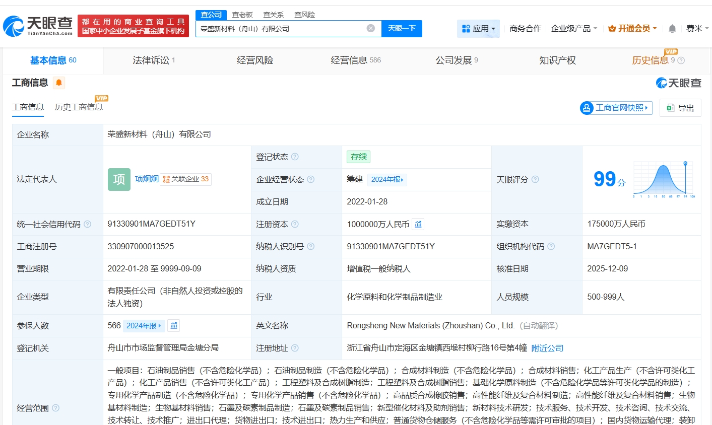 该公司成立于2022年1月,法定代表人为项炯炯,经营范围包括石油制品销售、石油制品制造、合成材料制造等,由荣盛石化(002493)全资持股。