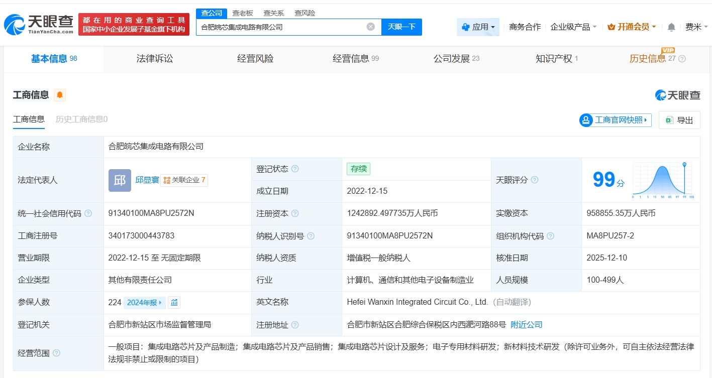 该公司成立于2022年12月,法定代表人为邱显寰,经营范围包括集成电路芯片及产品制造、集成电路芯片及产品销售、集成电路芯片设计及服务、电子专用材料研发等,现由晶合集成(688249)、建信金融资产投资有限公司及上述新增股东等共同持股。