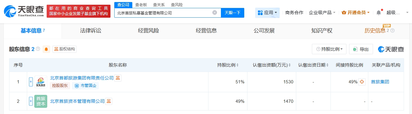 雷达财经讯,天眼查App显示,近日,北京首旅私募基金管理有限公司成立,法定代表人为李源光,注册资本3000万人民币,经营范围为私募股权投资基金管理、创业投资基金管理服务。股东信息显示,该公司由北京首都旅游集团有限责任公司及旗下北京首旅资本管理有限公司共同持股。