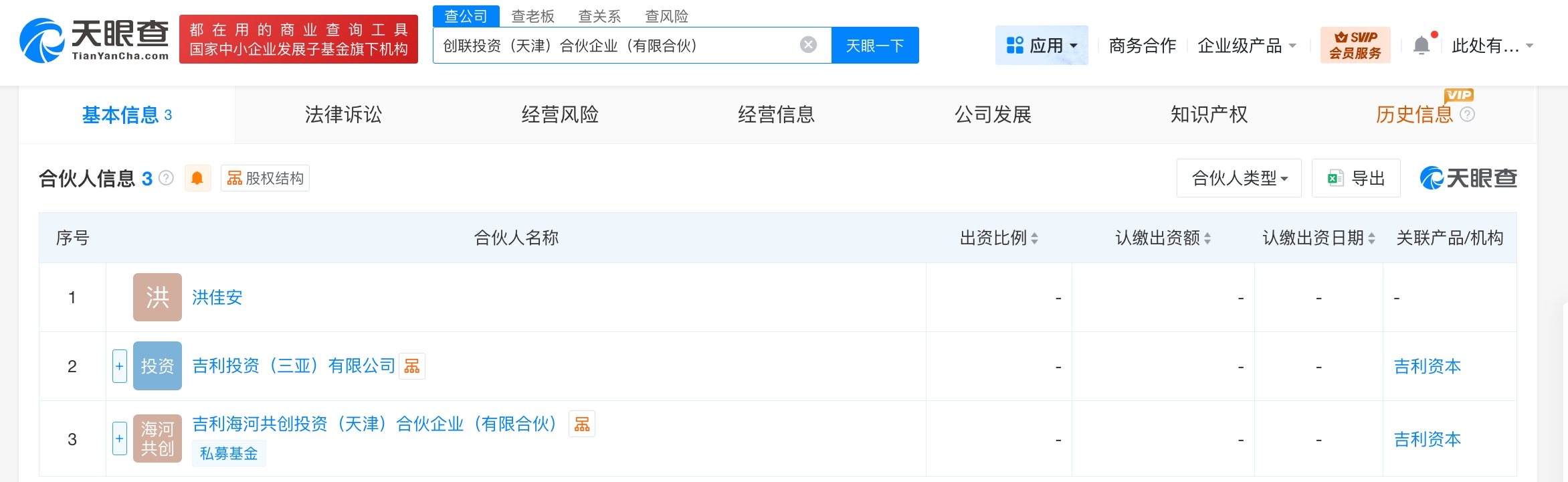 雷达财经讯,天眼查App显示,近日,创联投资(天津)合伙企业(有限合伙)成立,执行事务合伙人为吉利投资(三亚)有限公司,出资额5040万人民币,经营范围含以自有资金从事投资活动。合伙人信息显示,该合伙企业由洪佳安、吉利投资(三亚)有限公司、吉利海河共创投资(天津)合伙企业(有限合伙)共同出资。