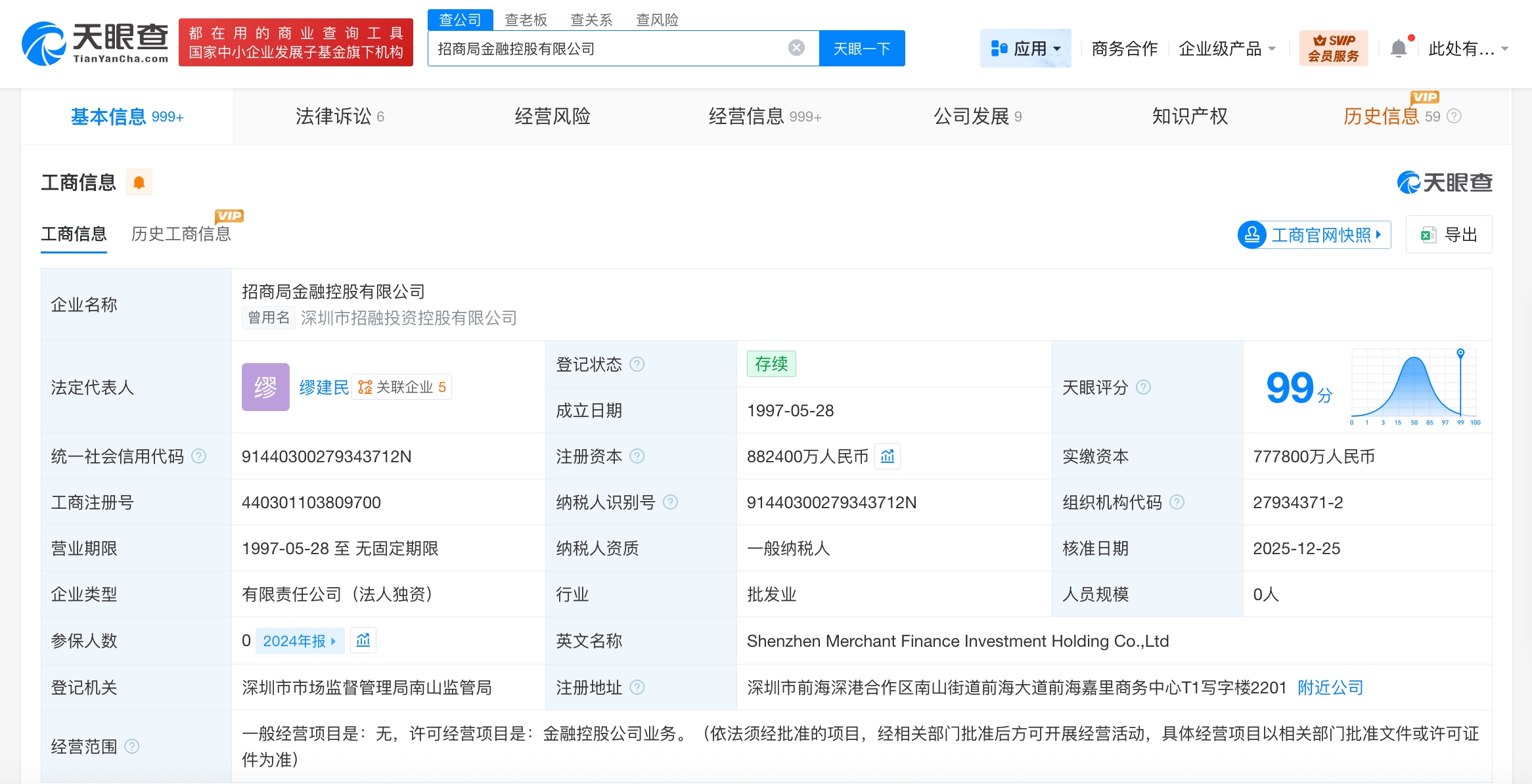 该公司成立于1997年5月,法定代表人为缪建民,经营范围为金融控股公司业务。股东信息显示,该公司由招商局轮船有限公司全资持股。