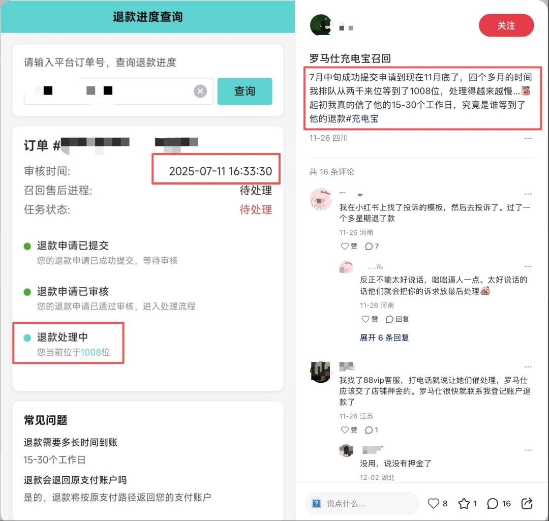 而罗马仕退款进度缓慢的问题,也引发消费者不满。据南方都市报7月报道,有网友晒出的退款进度显示,其排队位置在17万之外,预计需15-30个工作日才能到账。