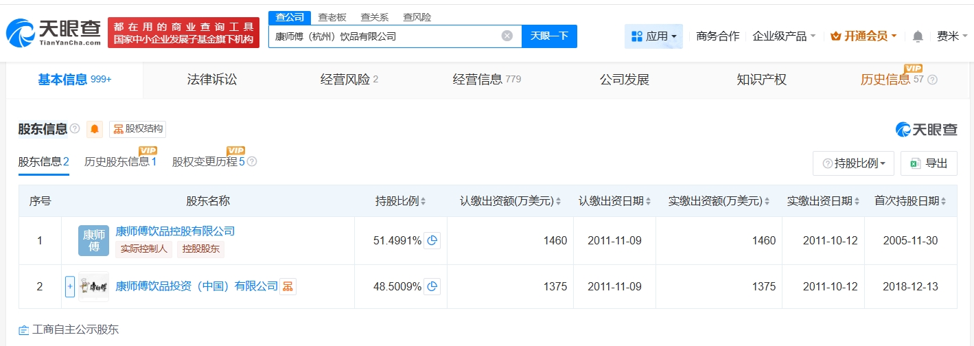 该公司成立于2005年11月,法定代表人为苏立荣,注册资本2835万美元,经营范围包括食品生产技术的技术咨询、技术服务等,由康师傅饮品控股有限公司、康师傅饮品投资(中国)有限公司共同持股。