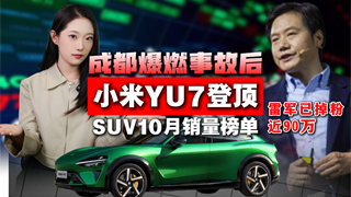 成都爆燃事故后,小米YU7登顶SUV10月销量榜单,雷军已掉粉近90万