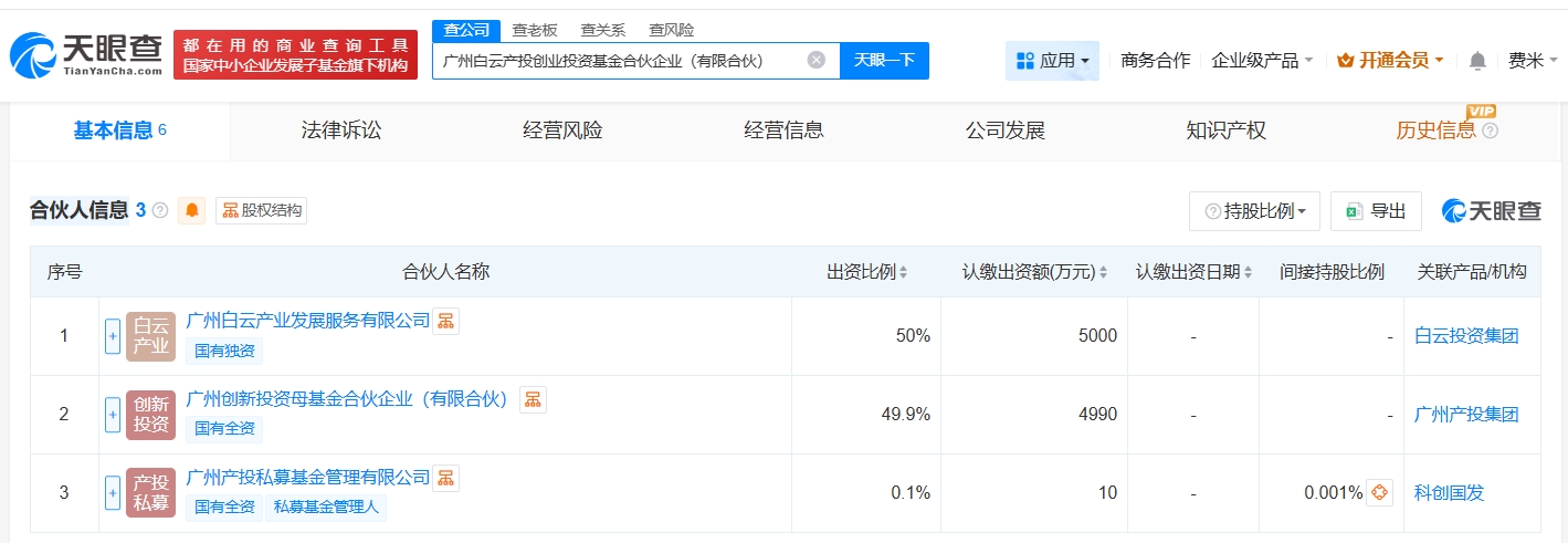 天眼查App显示,近日,广州白云产投创业投资基金合伙企业(有限合伙)成立,执行事务合伙人为广州产投私募基金管理有限公司,出资额1亿人民币,经营范围为以私募基金从事股权投资、投资管理、资产管理等活动,由广州白云产业发展服务有限公司、广州创新投…