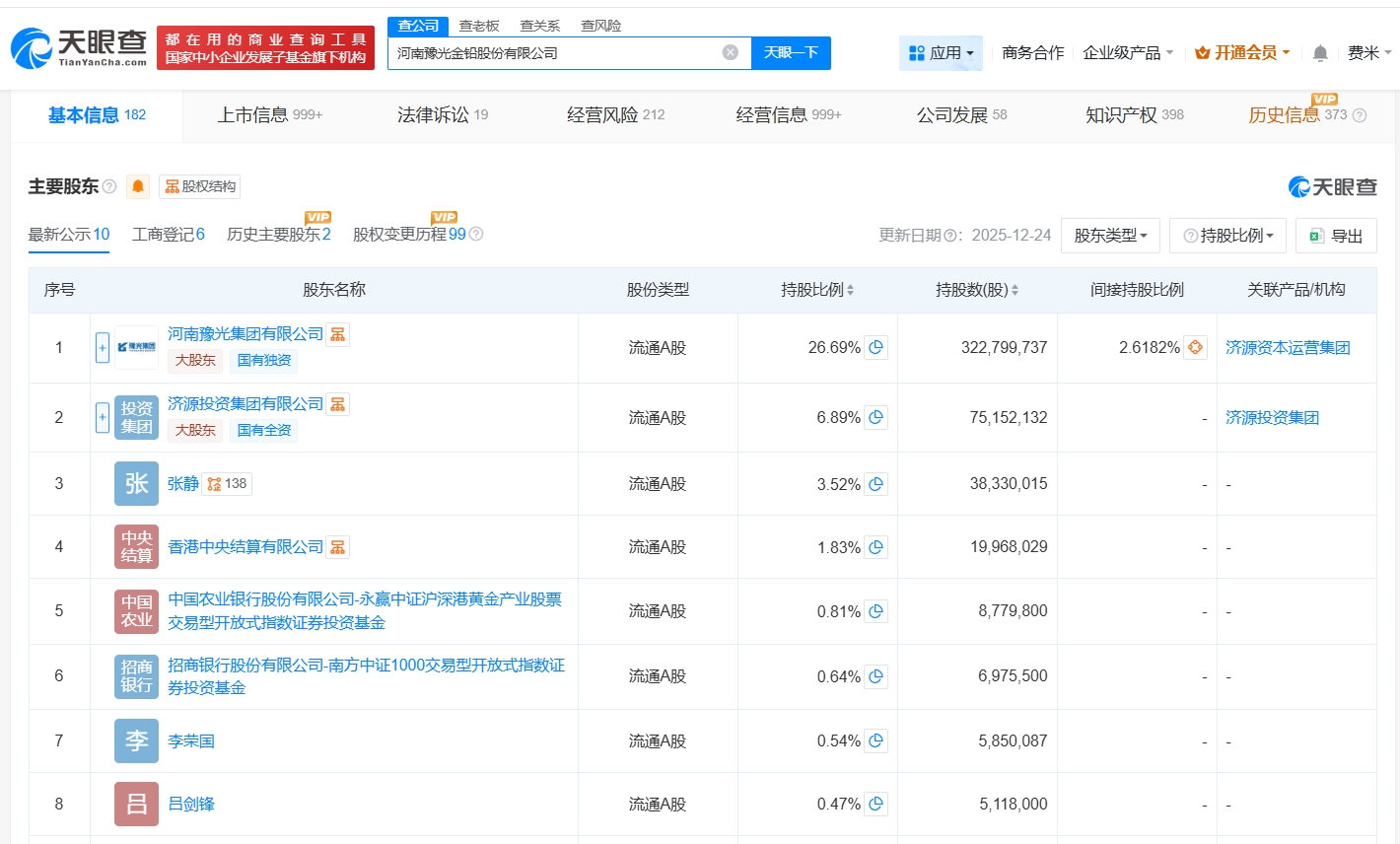 河南豫光金铅股份有限公司成立于2000年1月,法定代表人为赵金刚,经营范围包括常用有色金属冶炼、化工产品销售、贵金属冶炼、金银制品销售等。股东信息显示,该公司由河南豫光集团有限公司、济源投资集团有限公司、香港中央结算有限公司等共同持股。