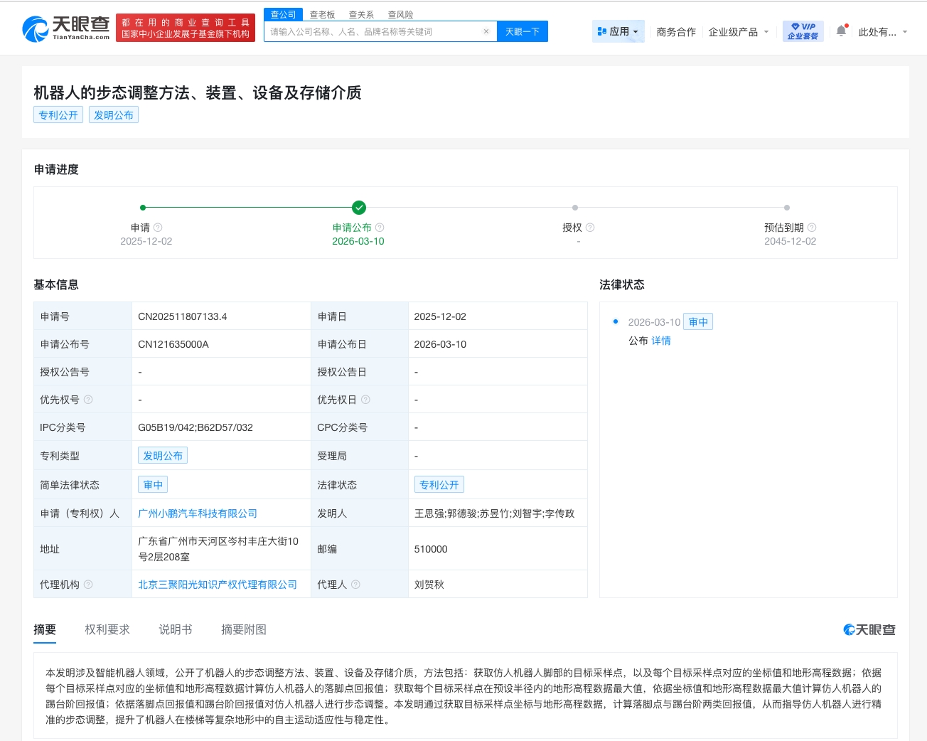 雷达财经讯,天眼查知识产权信息显示,近日,广州小鹏汽车科技有限公司公布“机器人的步态调整方法、装置、设备及存储介质”专利。