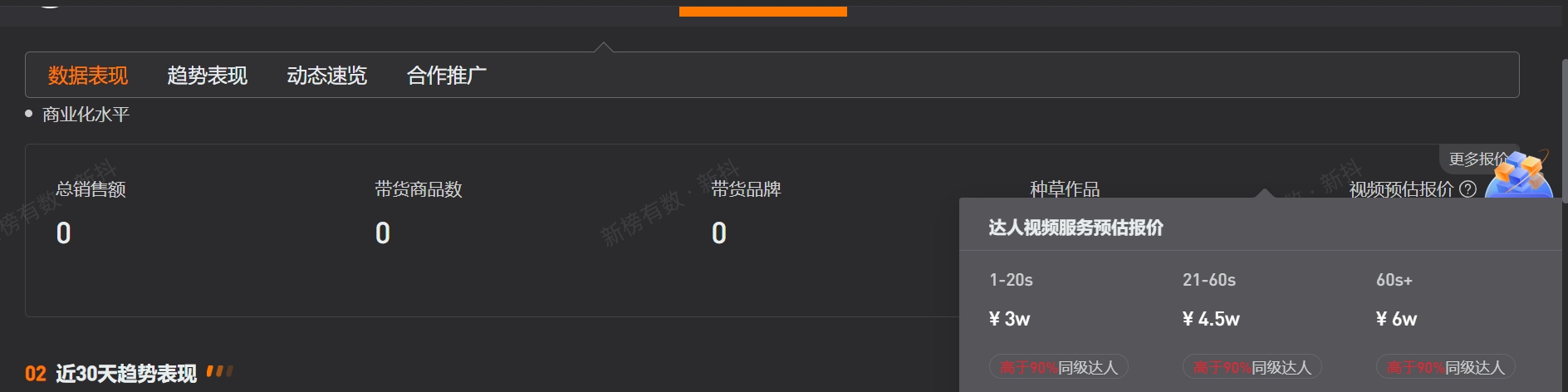 第三方数据显示,截至4日上午10点,潘美丽视频平台粉丝数为79万,近30日涨粉3.6万。此外,其1-20s视频广告报价为3万,21-60s视频广告报价为4.5万,60s以上视频广告报价为6万。