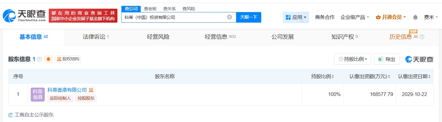 雷达财经讯,天眼查App显示,近日,科蒂(中国)投资有限公司发生工商变更,注册资本由约15.3亿人民币增至约16.9亿人民币,增幅约10.5%。值得一提的是,今年9月和11月,该公司曾两次增资。