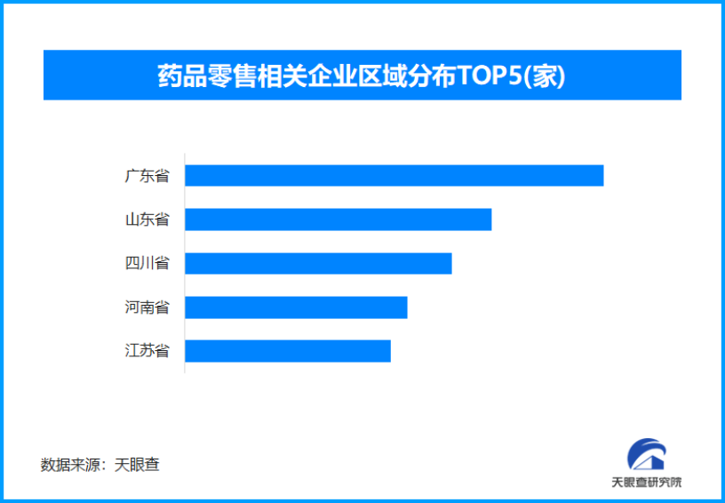 从区域分布来看,广东省、山东省、四川省药品零售相关企业数量位居前列,分别拥有超12万余家、8.8万余家和7.7万余家。